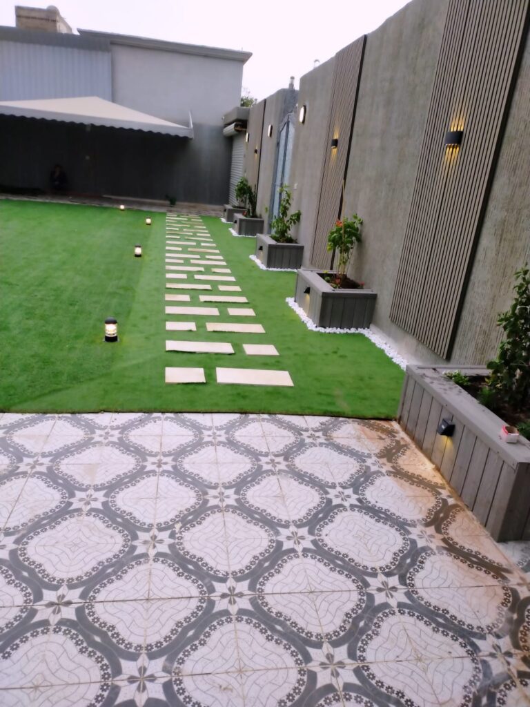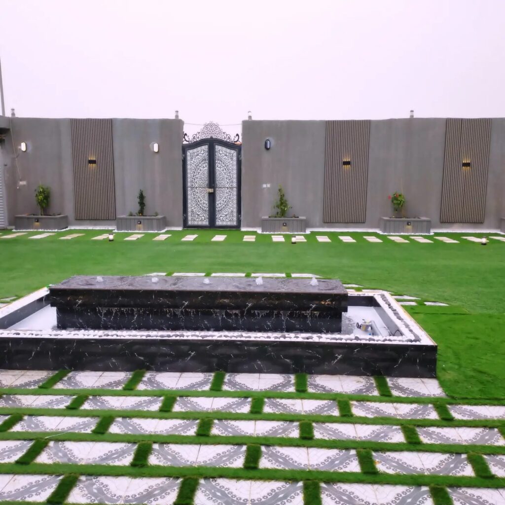نقوم بتنسيق الاحواش بأجمل النباتات، الإضاءة الخارجية، العشب الصناعي والممرات الحجرية لبيئة أنيقة.